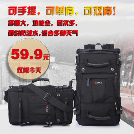 新款三用包包,可手提、可单肩、可双肩!容量大,功能全,层次多,面料防泼水,适合多种天气!人体工学肩带加宽设计,轻松减压棉层,舒适透气系统!选择它不会错,将会是您旅途中很贴心的“伴侣”!天猫kaka卡卡旗舰店原价118,拍下59.9元包邮,价格不错,值得看看。