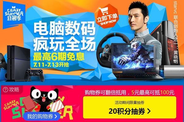 酷夏风暴大家电会场是本次促销的主角,重点品类空调、冰箱好加价商品云集,可以关注一下20积分抽券活动,用20积分兑换膨胀购物券,抽5元可满299元可抵40元,中奖率非常高。