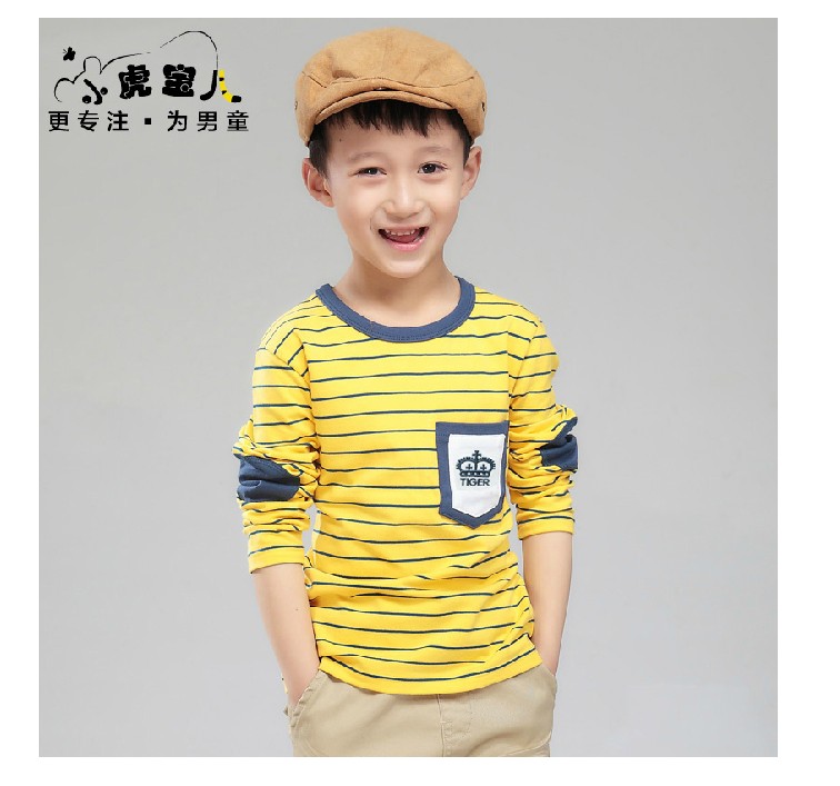 秋装2013新款童装秋款儿童长袖t恤纯棉 韩版条纹男童中大童衣服潮 优质莱卡面料经典永恒条纹